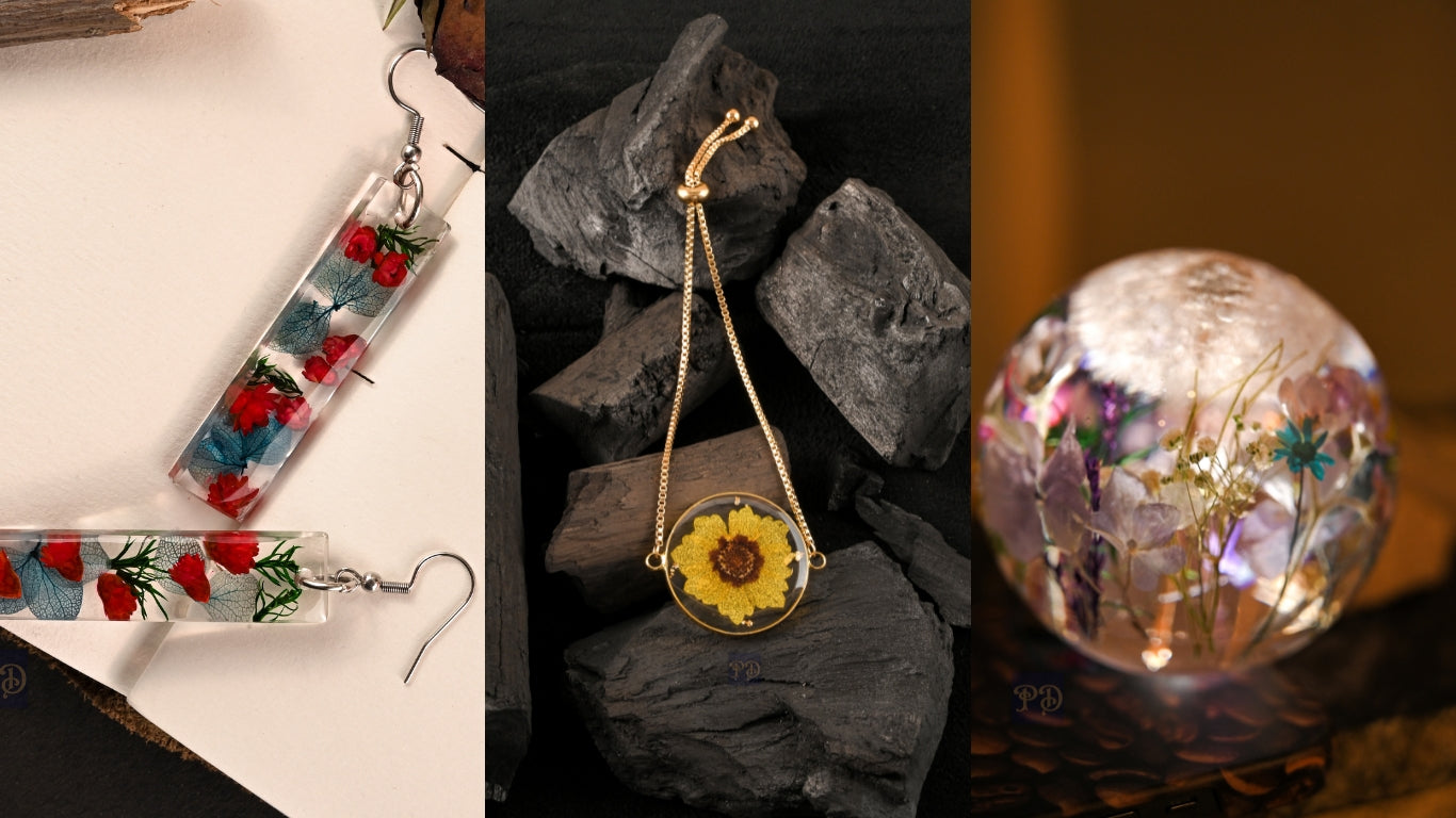 Real flowers, leaves, and seeds, preserved in handmade resin jewellery and decor. Let your style bloom—dare to be different with Perky Diva