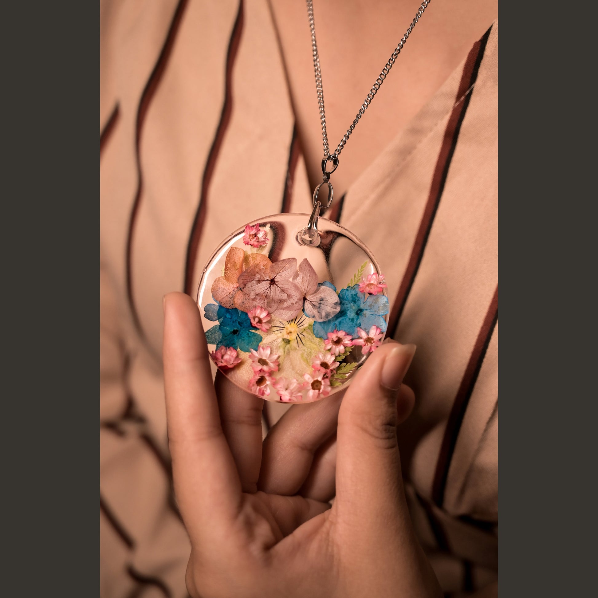 - Each piece is handmade with real flowers, making every product one of a kind.