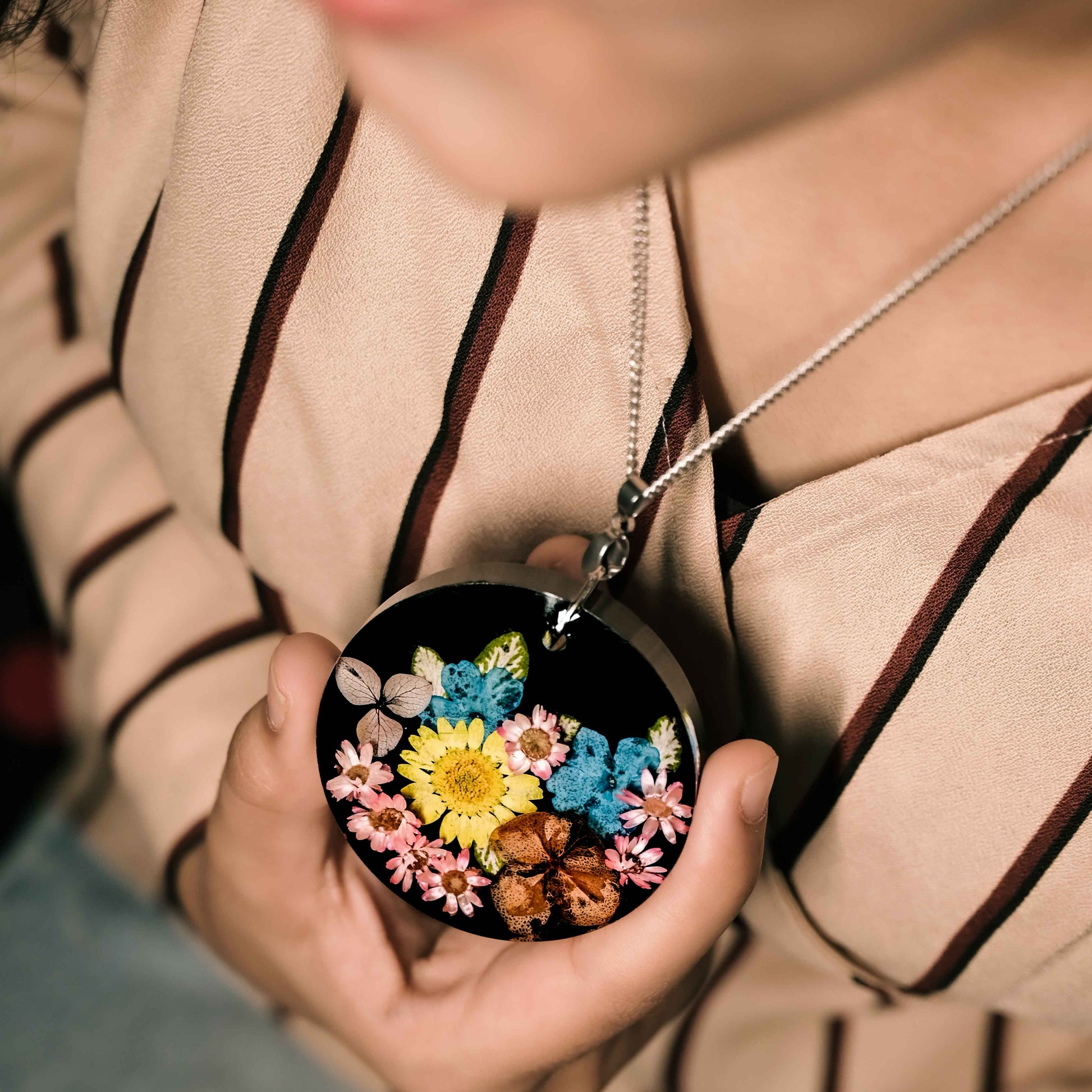 - Each piece is handmade with real flowers, making every product one of a kind.