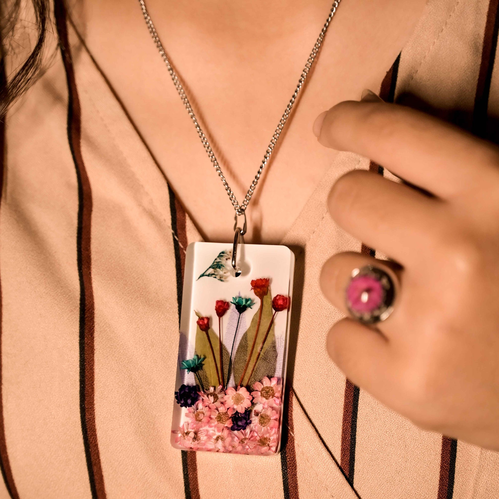 - Each piece is handmade with real flowers, making every product one of a kind.