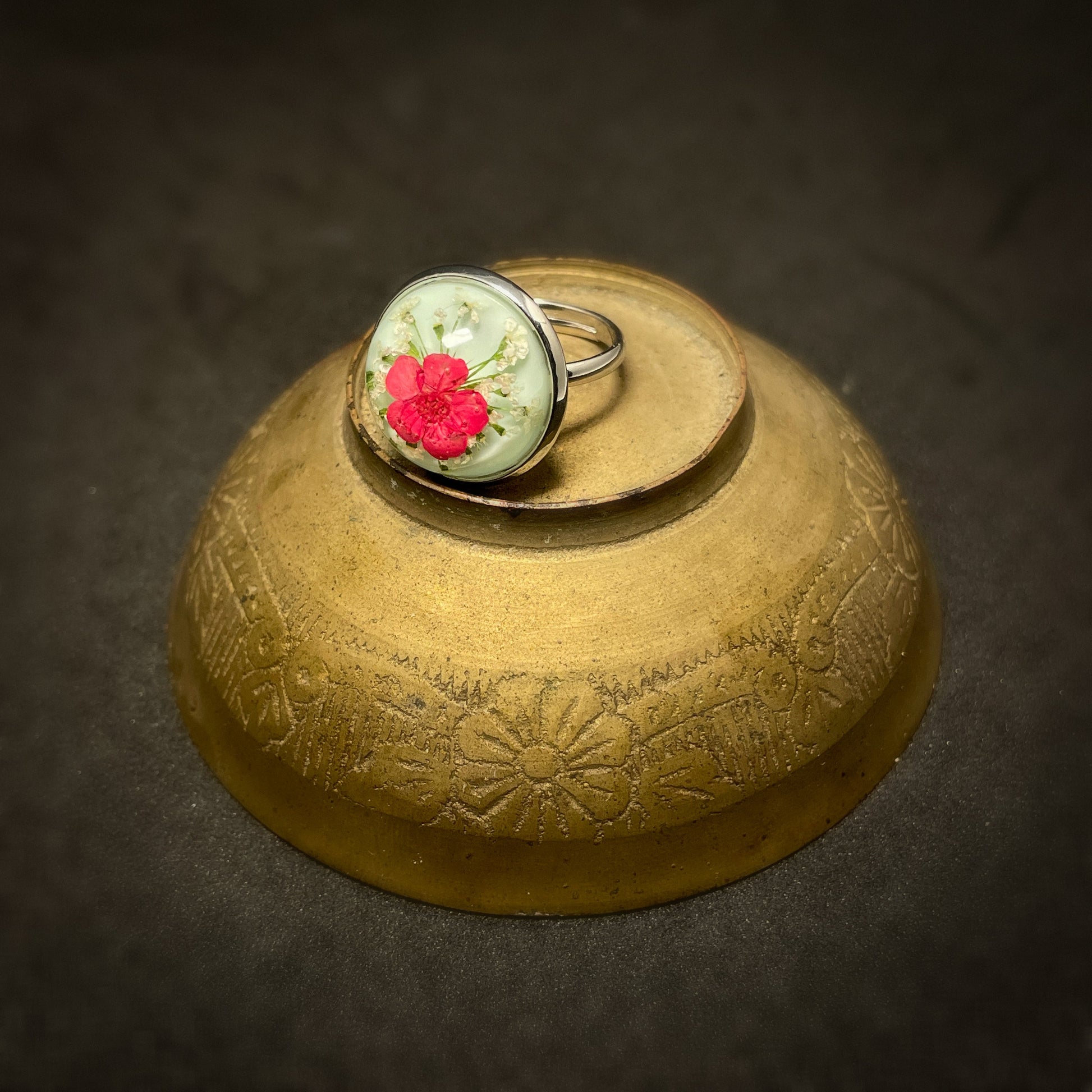 Note: Dear valued customer, we want to let you know that each ring in our collection is uniquely handcrafted and may vary slightly from the product photos. This is because we use real flowers in our designs, and each flower has its own distinct characteristics and beauty. Rest assured that each ring is made with the same attention to detail and care, and we believe that these variations only add to the charm and uniqueness of your piece. Thank you for choosing our preserved flower resin jewelry, and we hope you love your one-of-a-kind creation as much as we do!